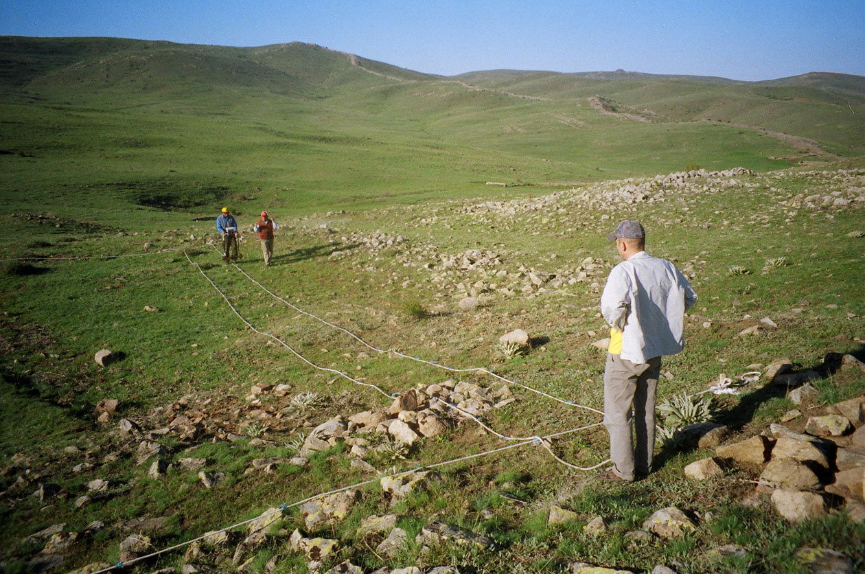 survey in progress over the large hall at the north end. The scar of trench