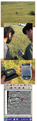 - Scott and Tuna verifying geophysical maps with the aid of a handheld GPS receiver and a palmtop.